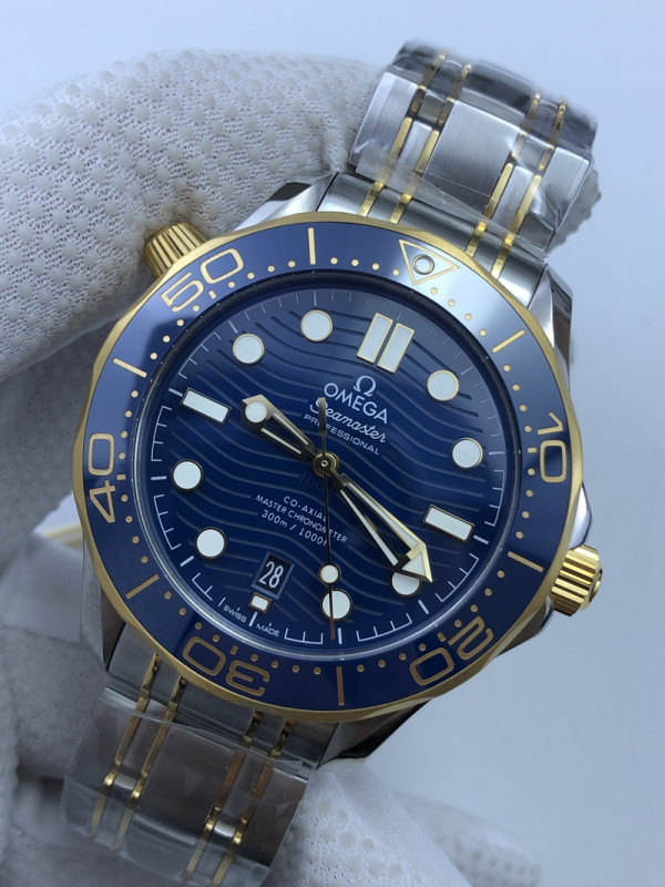 (준비완료/특급배송)NO.655/OR공장 오메가 다이버 300 옐로우골드 콤비 블루다이얼 블루 브슬
