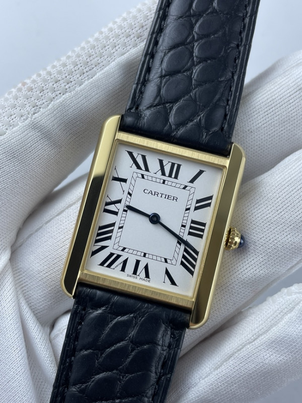 (국내발송1점 )K11공장 까르띠에 탱크솔로 27MM 가죽 옐로우골드