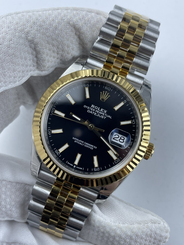 (준비완료/특급배송/)NO.1213/VS공장 롤렉스 데이저스트 41MM 옐로우 골드 콤비 블랙 바인덱스 쥬빌레 VS3235