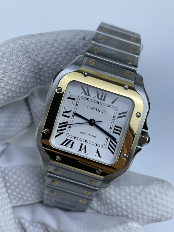 (준비완료/특급배송)NO.3225/BV공장 까르띠에 산토스 2018 미디움 스틸 옐로우골드콤비 화이트다이얼 스마트링크 브슬 35MM > 쇼핑