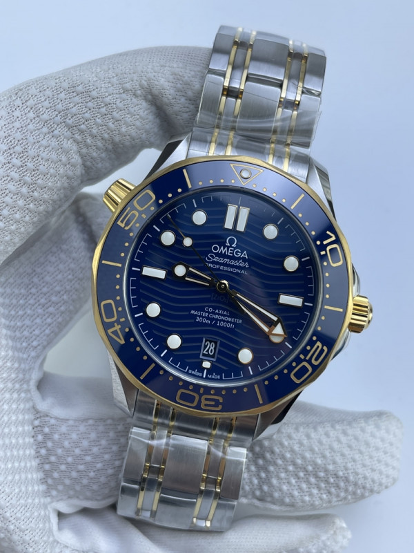 (준비완료/특급배송)NO.3296/VS공장 오메가 다이버 300 옐로우골드 콤비 블루다이얼 블루 브슬 > 쇼핑