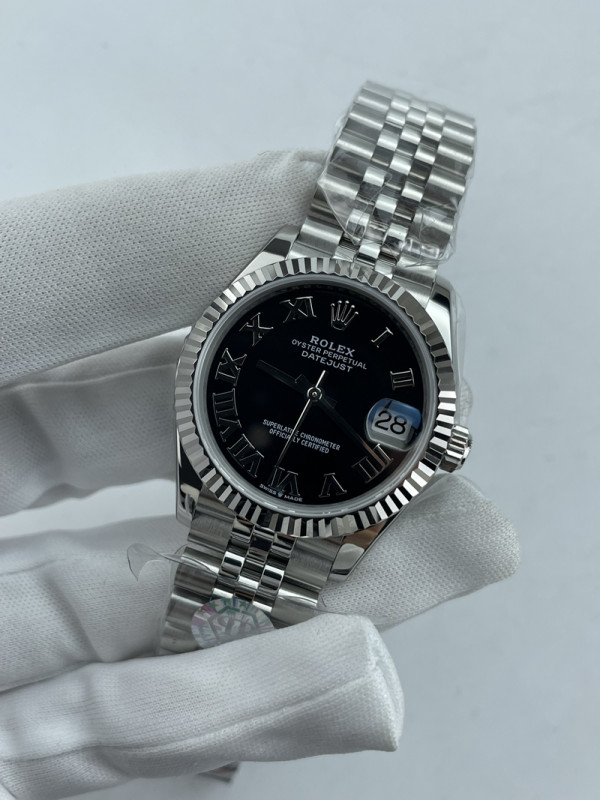 (준비완료/특급배송)NO.3652/QP공장 롤렉스 데이저스트 31mm 여성용 시계 블랙 로만 다이얼 플루티드 베젤 쥬빌레 밴드